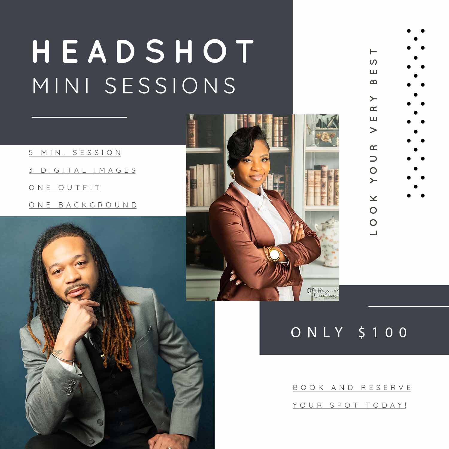 The first: Headshot Minis. I typically offer these for January only, but have decided to extend them through February to give people a chance to get in. These are good for one person, head and shoulders only, one background, and come with 3 digital images.
